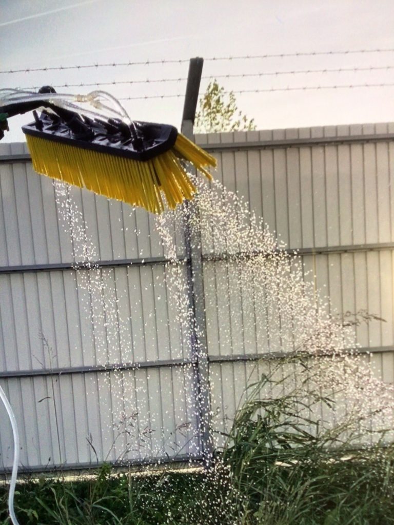 Sisteme de spalat panouri solare, compuse din prelungitor,perie cu duze și furtun 25m care se conectează direct la un furtun de grădina sau stație de dedurizare